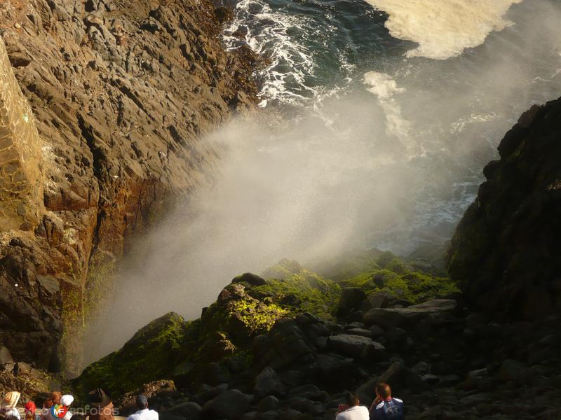 Imagina una cueva marina erosionada por el oleaje durante miles de años. Las olas entran con fuerza y, al chocar con la roca, generan un estruendo impresionante y un chorro de agua que puede alcanzar hasta 30 metros de altura. ¡Un espectáculo único en el mundo!